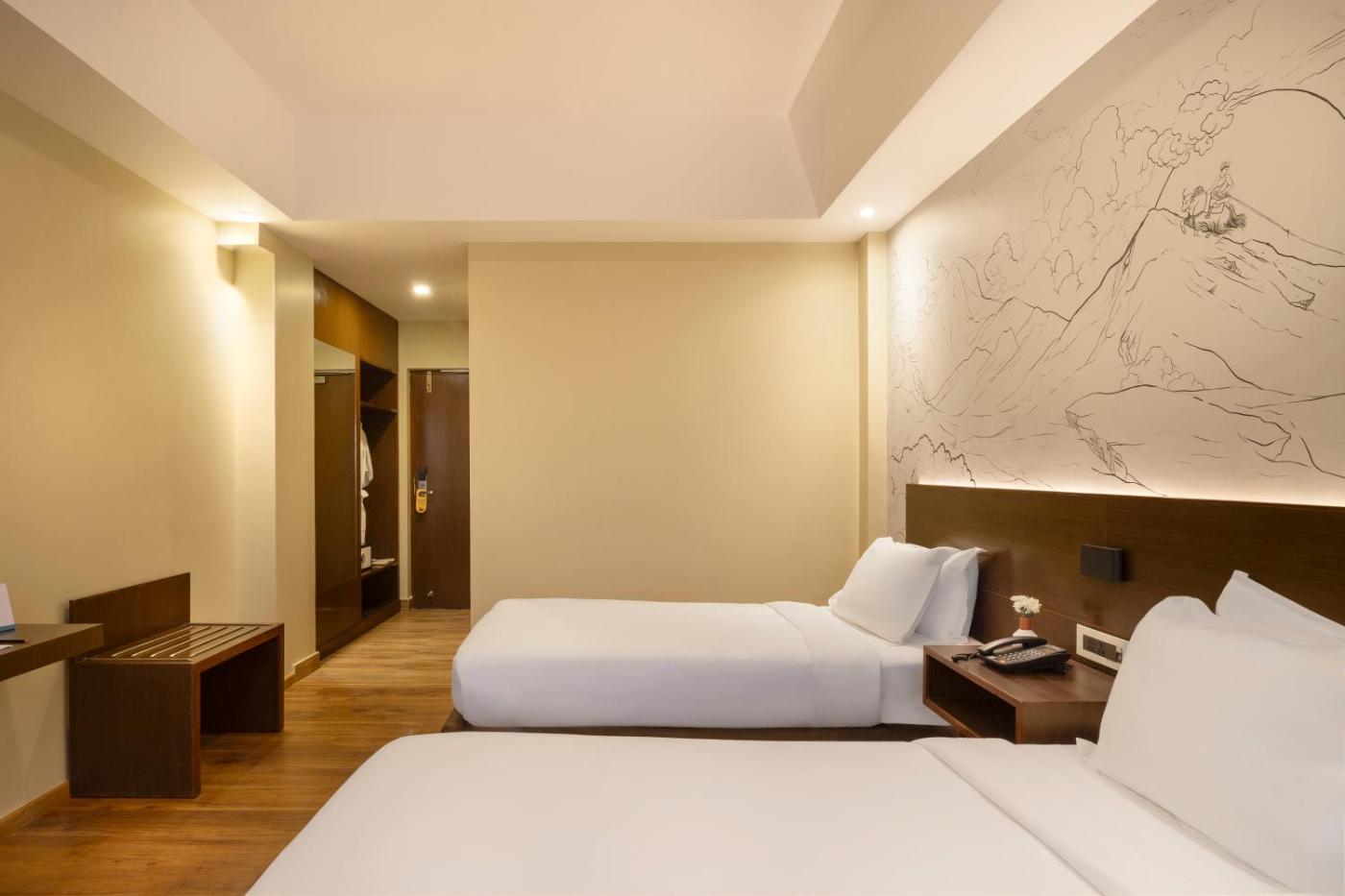 Deluxe Double or Twin Room. The spacious twindouble room provides air conditioning, a private entrance, a balcony with city views as well as a private bathroom featuring a walk-in shower. The unit offers 1 bed. ;